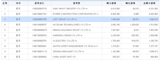 SEIbro數(shù)據(jù)顯示,近一個(gè)月以來(lái),韓國(guó)股民對(duì)三一重工、中國(guó)電建、許繼電氣等行業(yè)龍頭產(chǎn)生濃厚興趣。其中,三一重工以近一個(gè)月凈買入超630萬(wàn)美元排名居首,中國(guó)電建的凈買入金額超過(guò)440萬(wàn)美元,許繼電氣的凈買入金額也不低于130萬(wàn)美元。